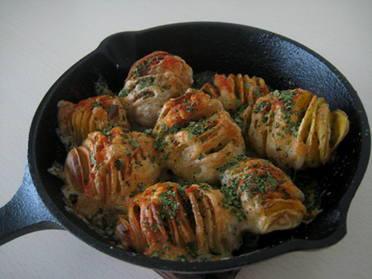 天空のHATAKEで収穫出来た小さなジャガたちで、ハッセルバックポテトを作ったり。