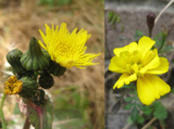アチラは、キク科で、食べられる「コオニタビラコ」と言いまして、花は黄色。