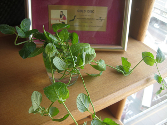剪定したミントを、水に浸けて、日当たりのよい場所へ置いてるだけッすw