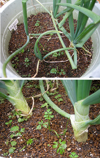 ホーム玉ねぎと、スイートキャロットの小さな芽たち、の、同居。