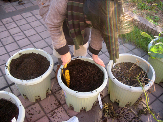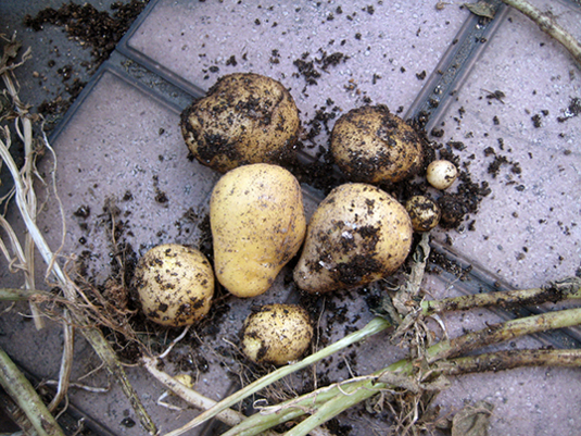 けっこう育っていた段階で持ってきてもらっていたジャガの鉢たち。