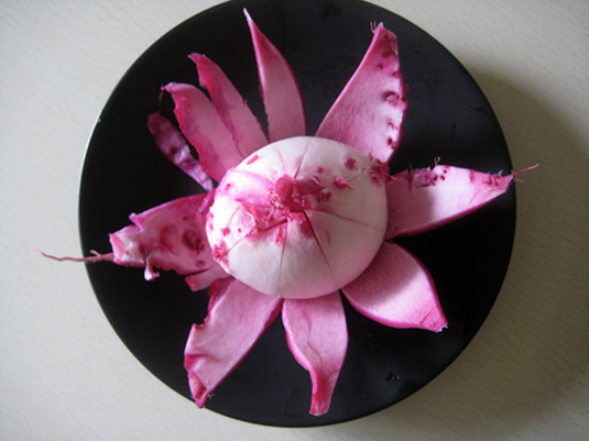 適当に切ったのと、むきづらかった箇所もあり、キレイな花びらには、なっていませんがwww