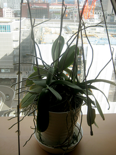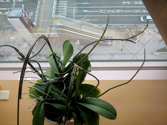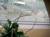 陽の光を求めるかのように、窓際へぐんぐん新しい芽を伸ばしています。