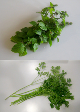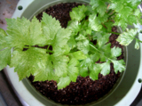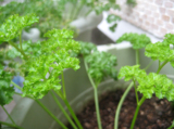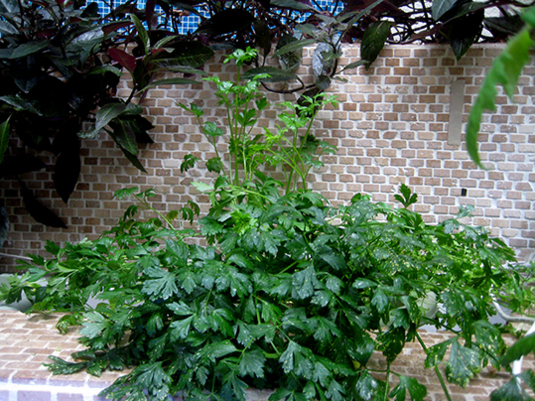 イタリアンパセリは、剪定したので一気に新しい葉が生え始めた。手前は最初の葉。