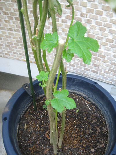 ばっさり剪定したオクラから新しい葉が。