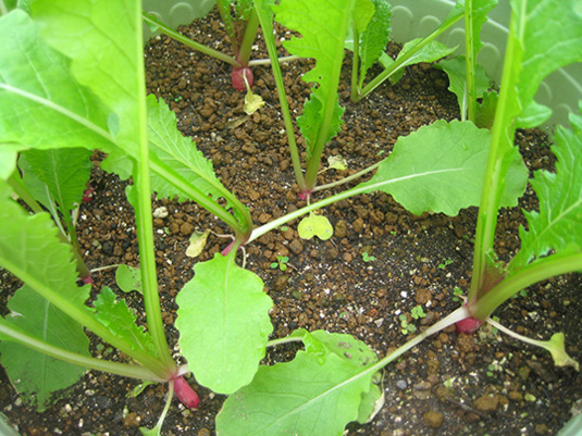 サラダかぶユキちゃんの間引きのお手伝いをしてもらった。