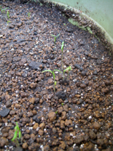 スイートキャロットは、丸い鉢にサークル上に条まきしましたからねえ。