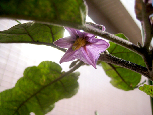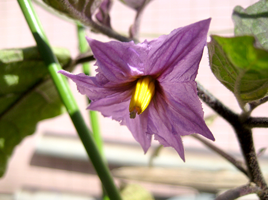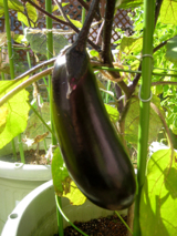 元気な鉢のナスの実は、少しずつ大きくなっている。