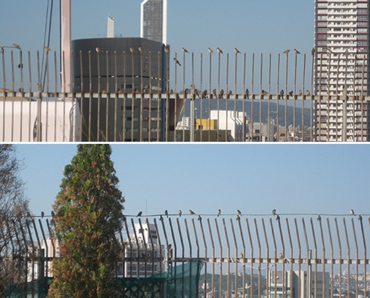 均等に柵にとまっていたり。