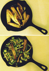 スキレットの余熱で、生野菜を続々投入。何を入れたかな?
