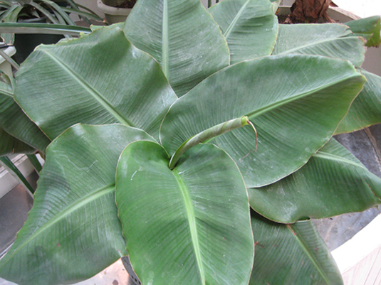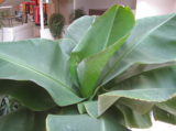 おとなりの小さいモンキーバナナも、負けじと新しい葉。ピロン。