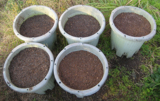 培養土と培土(世の中に初めて出した土)の鉢、すでに乾燥していた。