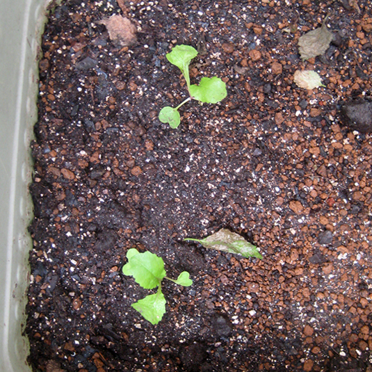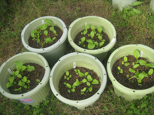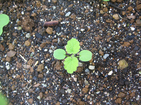 有機石灰入りの鉢の子は、葉が少しだけ大きい。