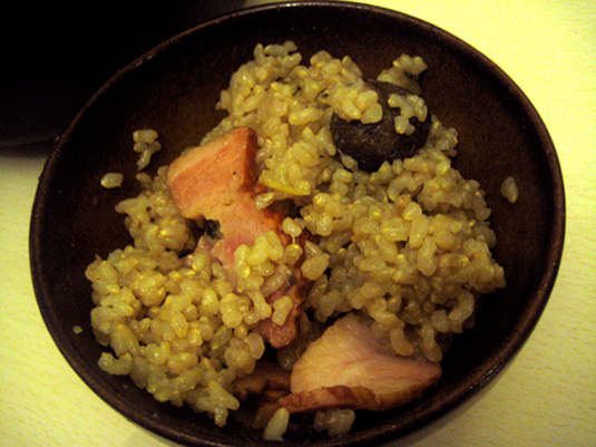 火にかけ炊飯。できあがり。まずは、むかご飯だけで。そして、