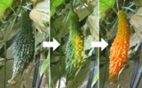 室内のゴーヤ。完熟しつつあります。