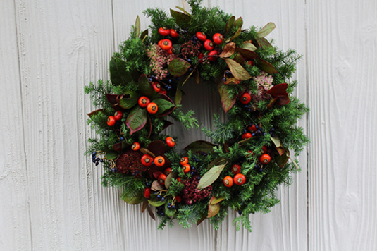 今回は、グリーンを基調としたリースです。いっしょにこの冬のお気に入りを作りましょう。