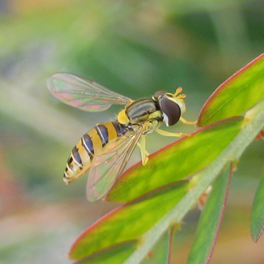 そして、ひさしぶりのホソヒラタアブ。カメラが近づいても逃げな〜い。