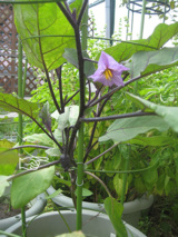 秋ナス→一番花は小さな小さな実をつけ始めました。
