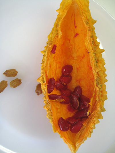 親方様にも献上。「完熟ゴーヤの赤いの、食べてみたい」と、おっしゃっていたので。