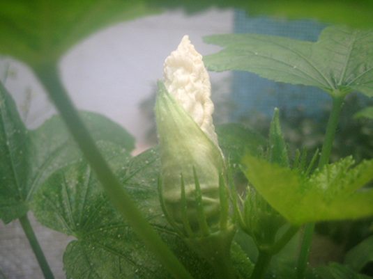 ソフトクリームいかがすか〜。オクラの花は、閉じると、ソフトクリームに似ています。