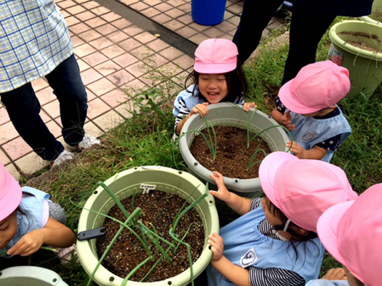 1つ1つそっとつまんで植えてる子もいれば、て〜い!と、放り投げている子もいましたw