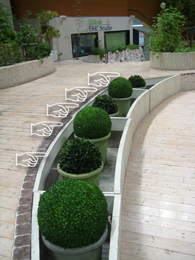 natu-garden中央の偽玉の下の土と鉢を利用する。