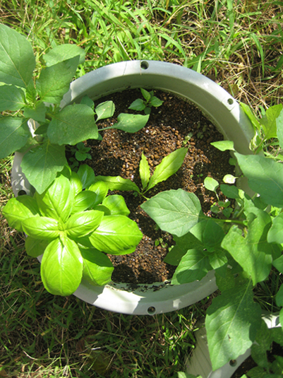 飛んできたバジルがキレイに生長中。抜くのは忍びない。。