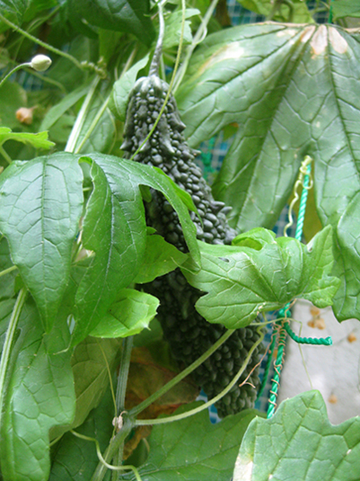 そして今頃ですが、人工受粉で結実した室内ゴーヤも生長中です。