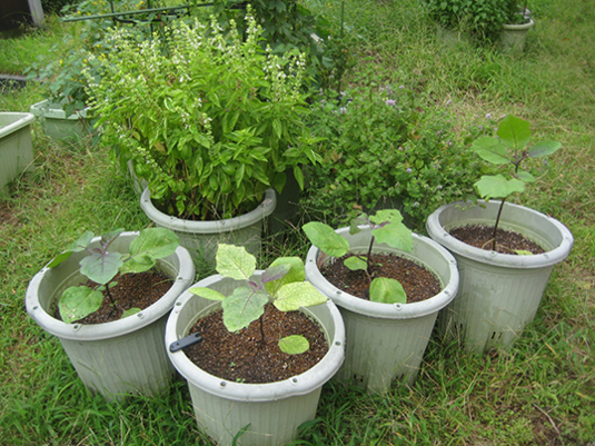 一番葉の色が薄いのは、野ざらし土+有機石灰。