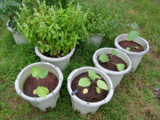・秋ナス(丸プランター4つ。ホップ、バジル、ミントの近く)