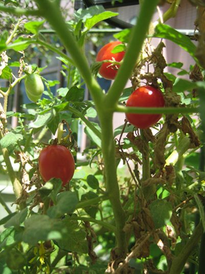 うまく実(み)が付いてゆけば、ミニトマトの房が、葡萄風になるという設定。