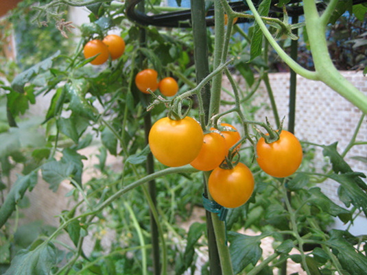 いろんな種類のミニトマトが育っています。