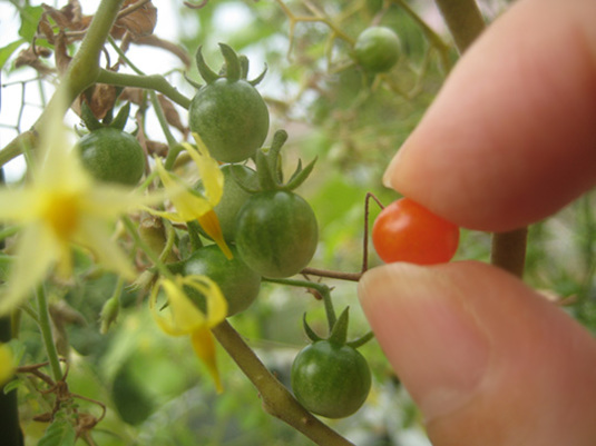 オムレツも蒸し。ファームのマイクロトマト入ってま。