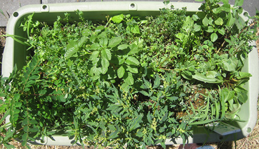 天空のほうは、まわりの野草たちをかきわけないと生長チェックできません。