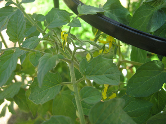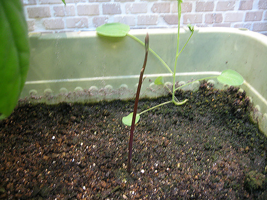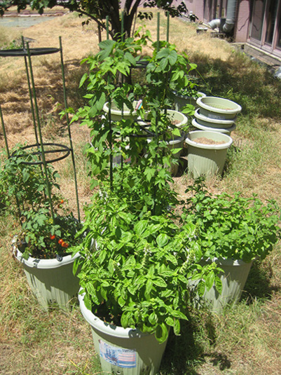 ミニトマトはホップと共に同じ場所へ、バジルは、ちょい背高なので、