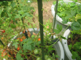 ミニトマトも、背を高くしておりまして、支柱は大活躍です。