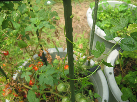 おとなりのミニトマト師の支柱にまでまきまきしてました!