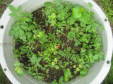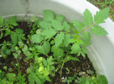 最近、なにやら、ナス科らしき芽が、生えてきたもよう。