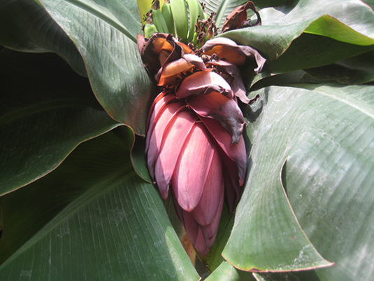 背高モンキーバナナのほうも、順調に葉を増やしています。