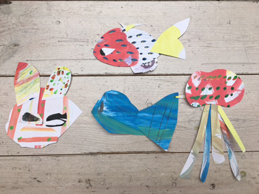 (コラージュの技法を使った動物づくり)