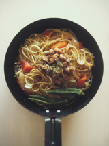 ゆでたてパスタにマヨとオリーブオイル絡め
