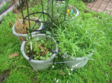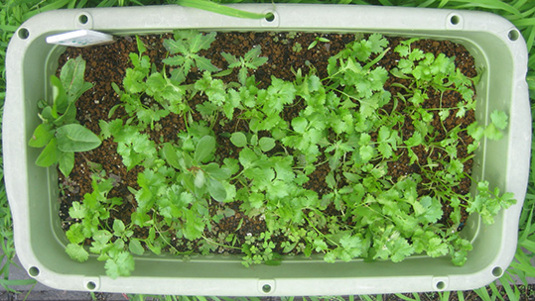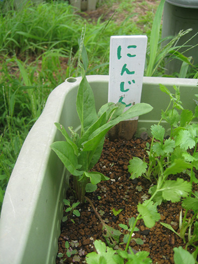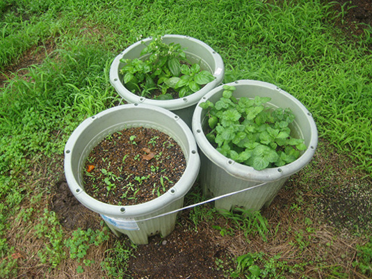 sp役のハーブたちも大活躍中。実のなる鉢の間間に配置されておりやす。