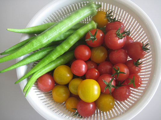 オクラも、生を軽く塩もみして、刻んで、豆腐に乗せるメニューあり。美味しそう!