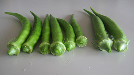 左軍:すでになってる状態で、やって来たオクラたち。繊維多しだが野菜らしいお味。