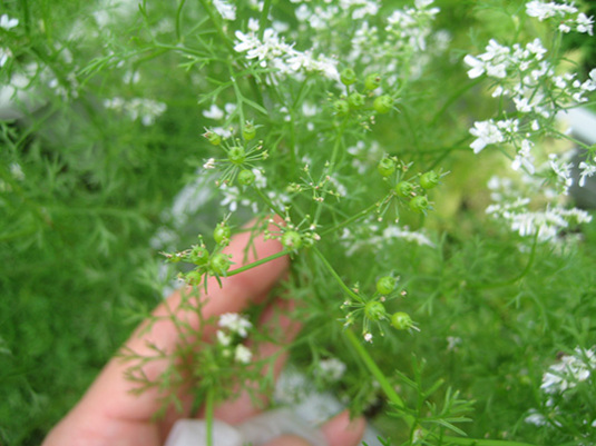 なんと!やったぬ(ね)〜!パクチーに種が付いたようです!