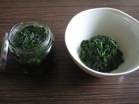1人前ほど、酢には漬けずにお浸しに。ごまふってもよいかもですね。