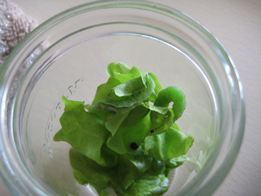 買ってきた、ほぼ無農薬レタスについてたあおむし。