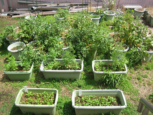 一時は、荒れた野菜たちですが、今では、ハーブ、野菜、小さな木々、お花からかわいい野草まで、生き生きと育っています。