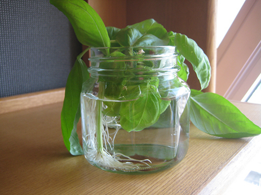 オフィスで根が出るのを待っていたバジルとミント。