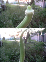 ゴーヤの実、熟し始めた、黄金(こがね)色。